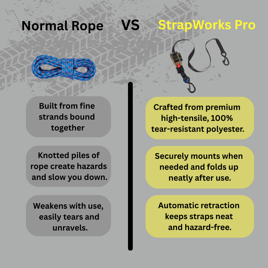 "These straps are a game changer. No more fighting with tangled ratchets – I just pull, lock, and go. They feel solid and make securing my loads so much faster."